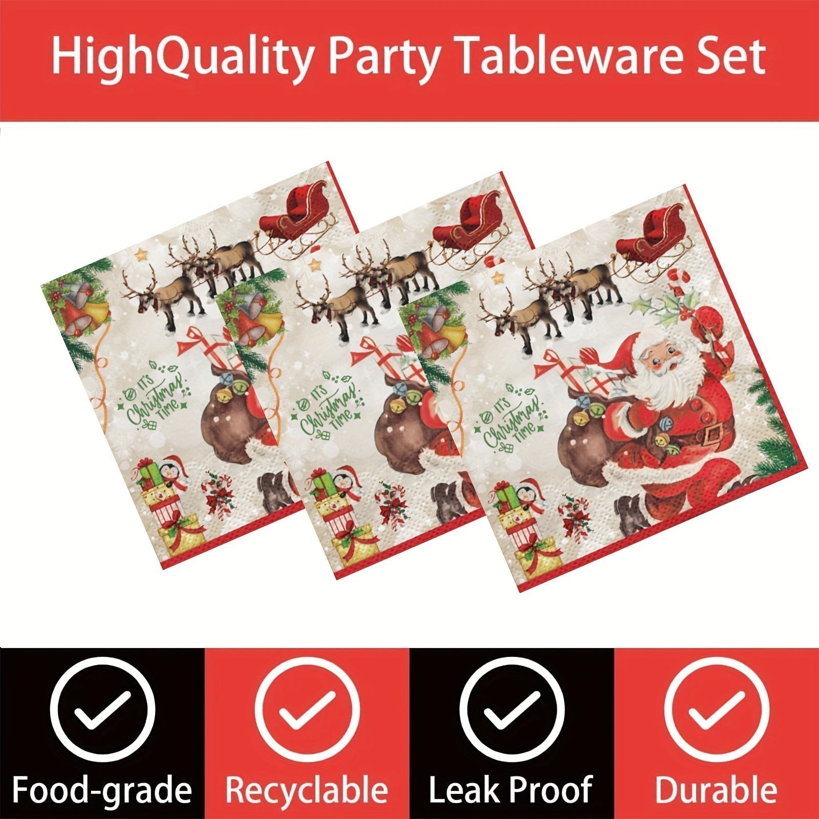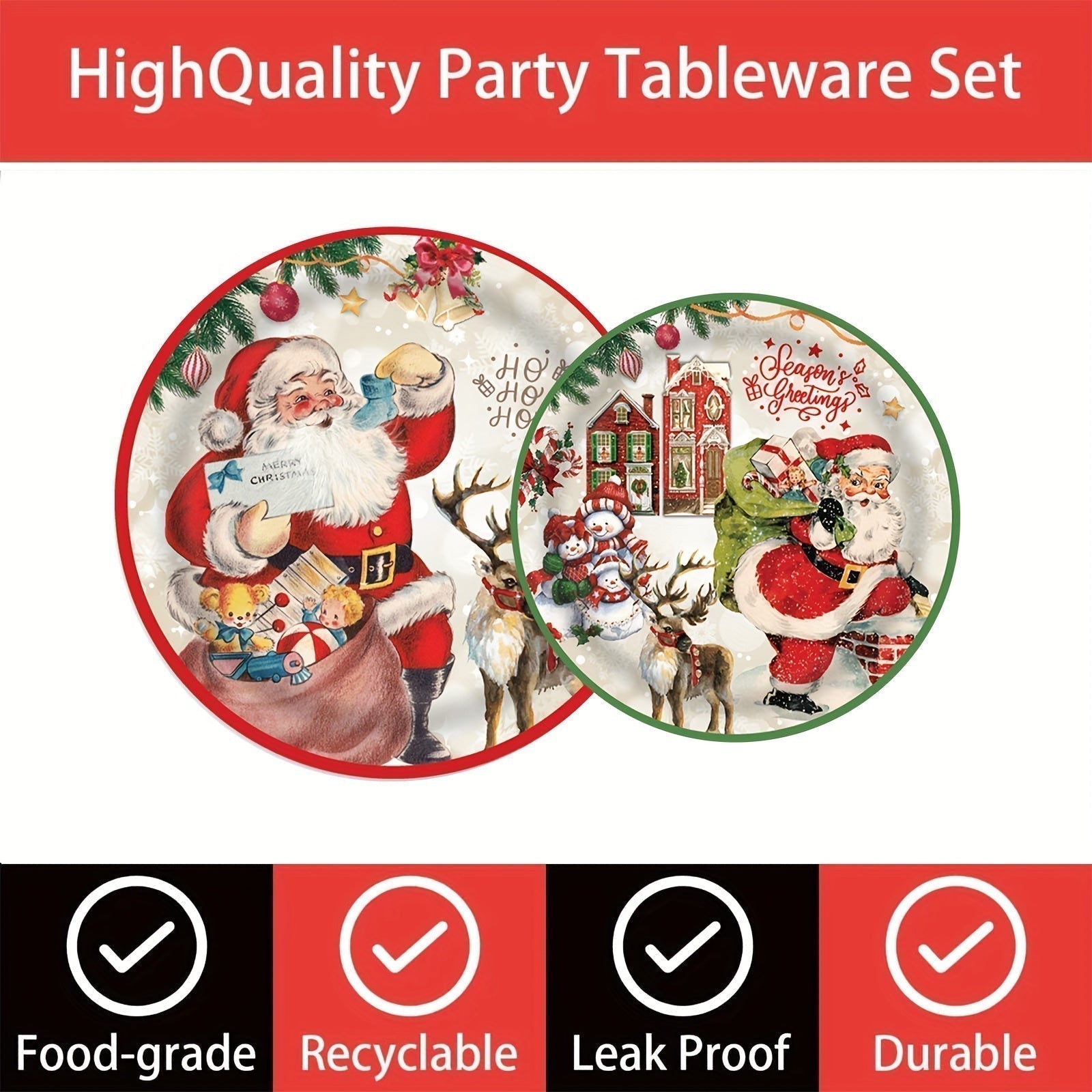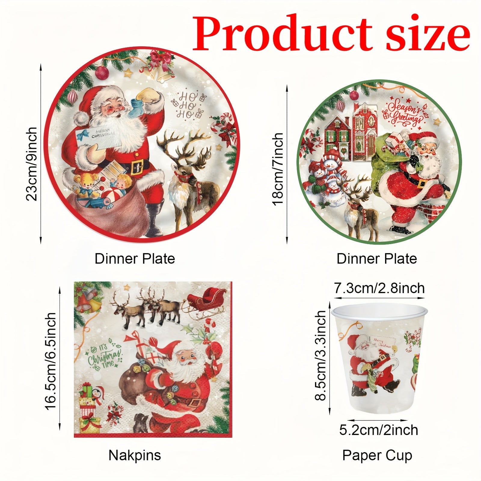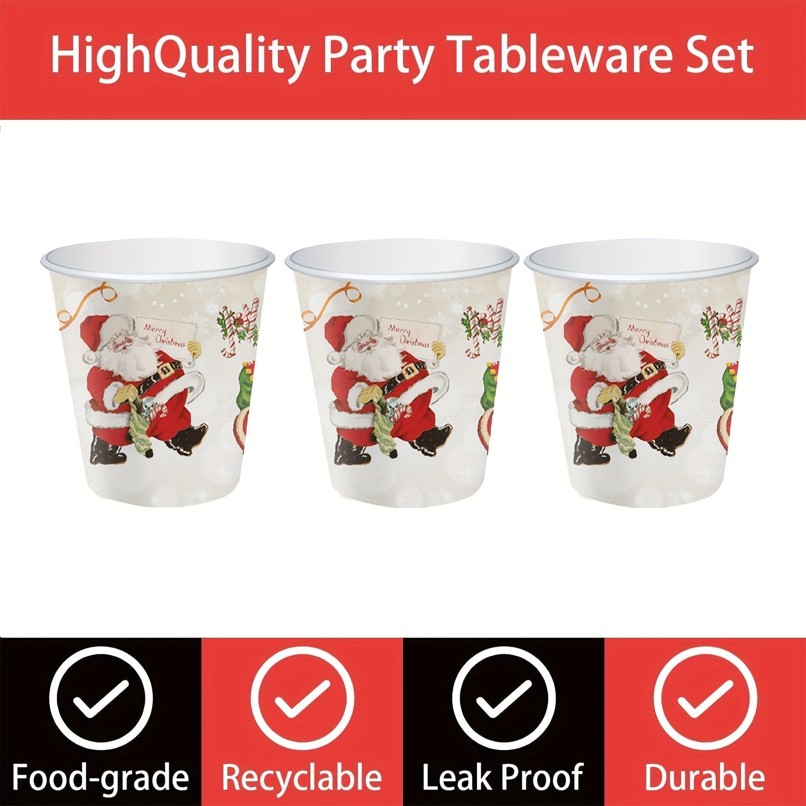 Conjunto Festa de Natal do Papai Noel - Pratos, Guardanapos e Copos