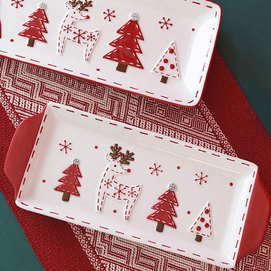 - Estilo: nórdico com tema natalino (relevos/figuras: árvore, alce, Papai Noel).